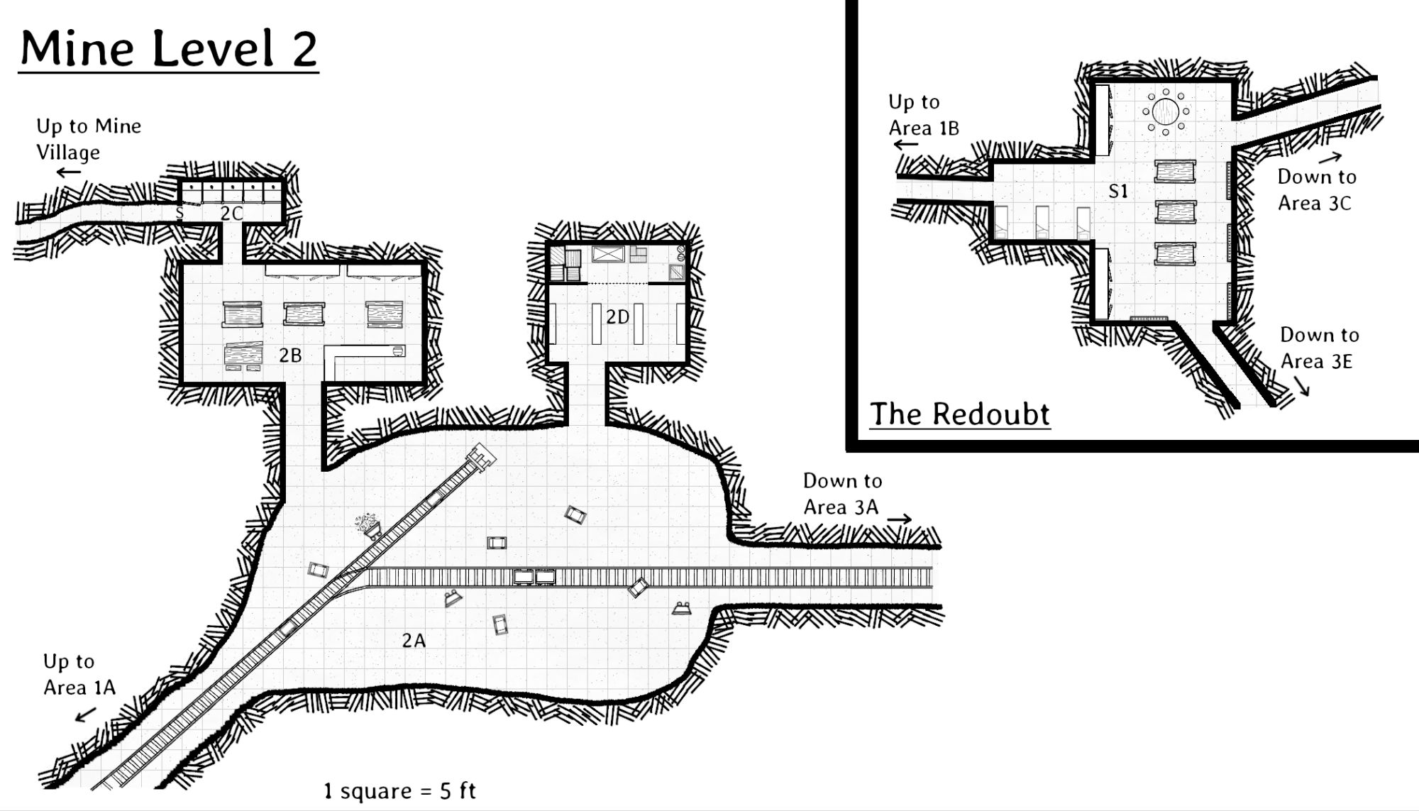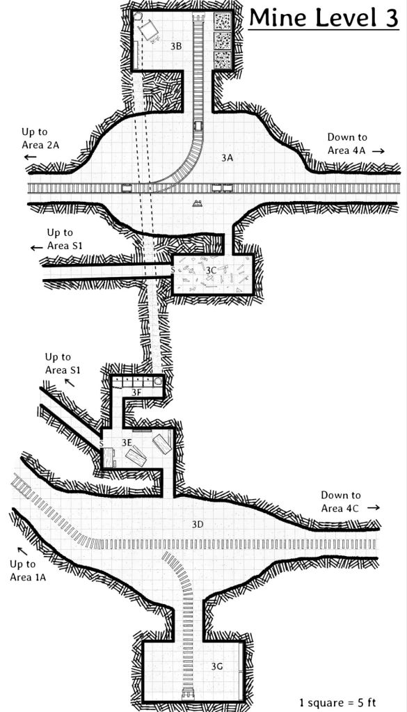 In the adventure proper, the two different mine tunnels are experiencing different threats, which we’ll touch on briefly. Of course, you can use this map however you’d like!